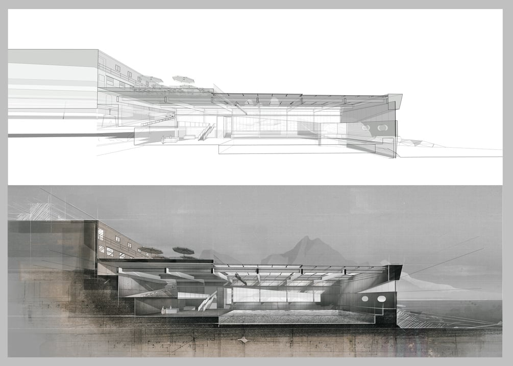 Illustrating an Architectural Section in Photoshop file - PSD with all layers used